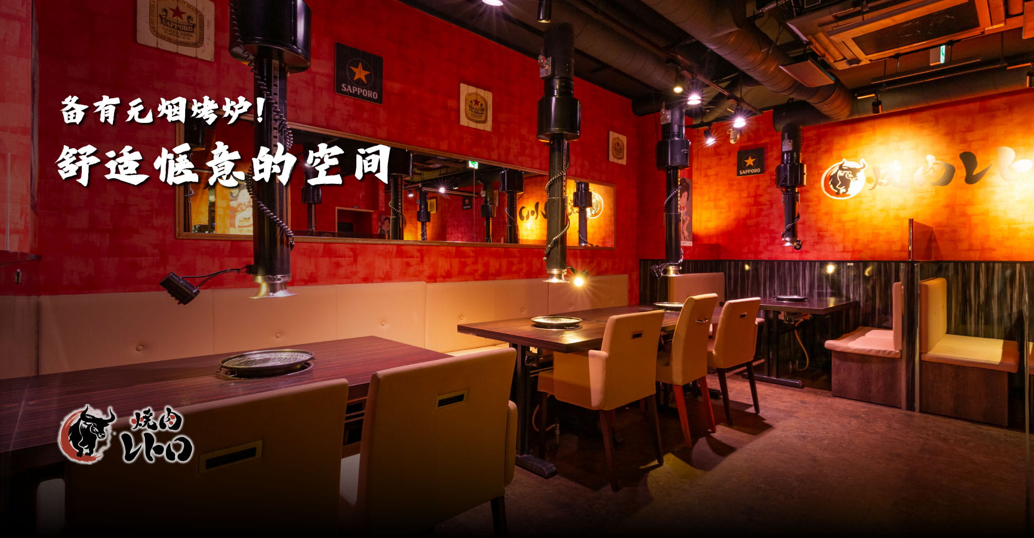 以红色为主调的店内空间,带有一丝令人怀念的沉稳氛围。每个座位皆配备无烟烤炉,让您无需担心烟雾与气味,尽情享受烧肉。宽敞舒适的沙发座位,让对话自然展开。不论是朋友聚餐、家庭用餐,或是下班后的小酌聚会,都能在此轻松使用,适合各种不同场合。