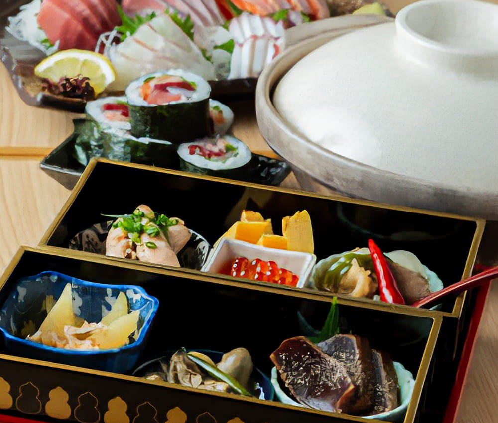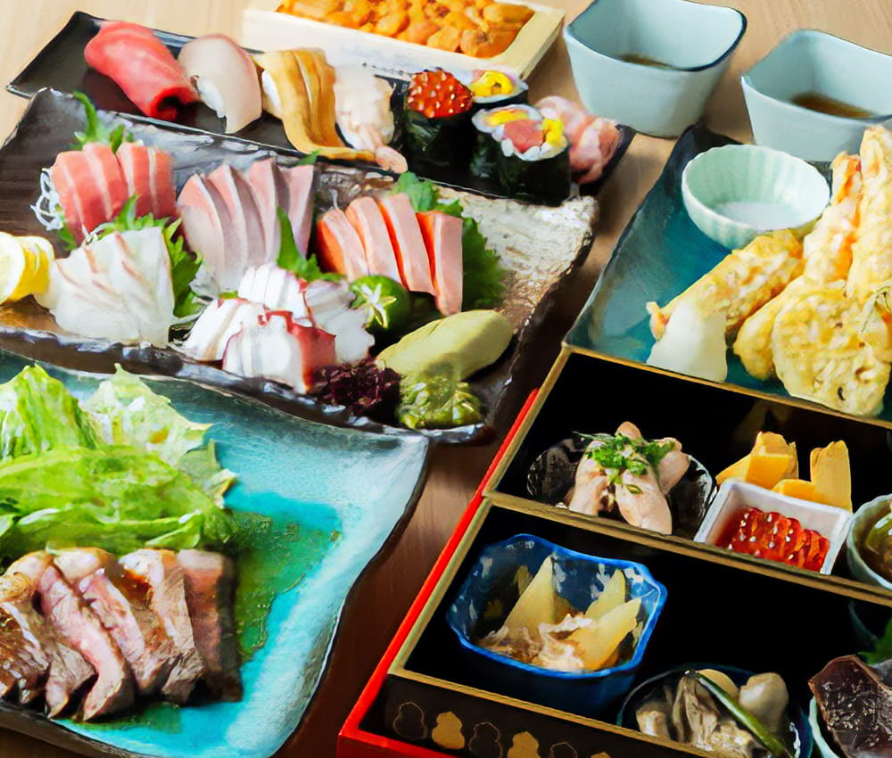 食べ応えのある旬のネタを使った寿司と新鮮な海鮮料理はもちろん、名物7福肴盛りや黒毛和牛イチボステーキなど豊富なお料理をご用意しております。